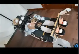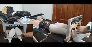 旅行者回到家突然就被迷晕了,醒来就发现自己被全身皮革加拘束衣紧紧捆绑在了躺椅上,双脚还被固定在木枷上,嘴巴也被堵死,等待她的将会是无尽的强制挠痒地狱
