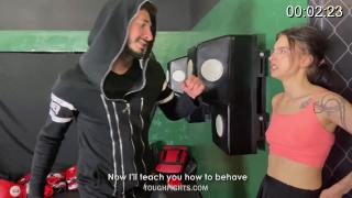 Aria got caught up in a racketeering gang of the biggest Mafia in town. She and her bully friends crossed Bos. She gets caught, she has to answer for all her bullies and tell them everything. She must pay her bills on time. These thugs have only the most unconventional methods of humiliation. They use her beautiful body to do it. Slaps, punches to the stomach, tying her up - thats strong domination.