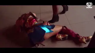 Superheroine w woman defeated by her enemy.