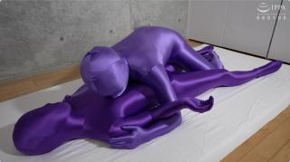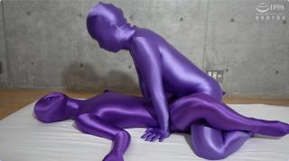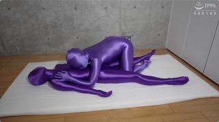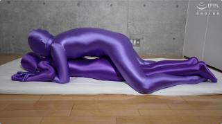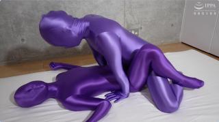 小姐诶和男伴一起穿着紫色丝滑zentai,缠绵激情贴贴做爱。