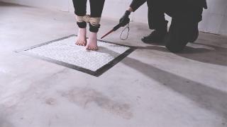 挑战很简单:用脚底戳破气泡膜,同时嘴里塞着球形口塞,双手被绑在天花板上。如果几秒钟以上没能戳破一个气泡,就会被电击惩罚……可怜的科拉没能戳破气泡,结果被电击了一遍又一遍……The challenge is simple enough. Pop the bubble wrap with the soles of her feet, while ballgagged and bound from the ceiling. If she fails to pop any bubbles for more than a few seconds, she is punished with a zap...It's too bad that Kora fails to pop the bubbles, and gets zapped over and over and over...