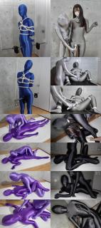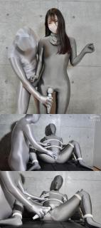 小姐姐穿着银灰色zentai,先是被坏人用快乐棒站立弄高潮。