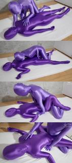小姐诶和男伴一起穿着紫色丝滑zentai,缠绵激情贴贴做爱。
