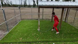 Inmate Fayth Cuffed, Chained & Gagged Walk In Yard