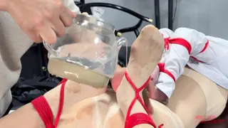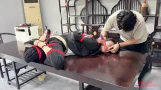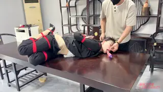 “你放开我,敢绑我,我要报警!”女领导被他用绳子紧紧捆住摁在办公桌上,动弹不得,“让你骂人,嘴这么脏,我给你好好洗一洗”,男职员从袋子里掏出假阳,粗暴的在女领导口中抽插着。男职员又觉得不过瘾,扒掉了女领导的衣服,只留下一身连体丝袜,“你不得好死!呜呜呜...”女领导话还未说完便被男职员用口球堵住了嘴巴。男职员将垃圾袋套在她的头上,死死的捂住,手里还不停用zd棒抵在女领导的下t,直到快要窒息才把袋子扯开,劫后余生的女领导疯狂的呼吸着新鲜空气。男职员又找来润滑油,均匀的涂抹在女领导的脚上,“没想到你这贱人,居然有一双美脚,这可得让我好好摸一摸”,男职员不断揉捏着她的双脚,深深沉浸在其中。看着一旁的茶壶,拎起来便浇在女领导的脚上和下t上,女领导被这突如其来的冷水,刺激的不住呜咽。男职员将zd棒固定在女领导下t,“好好在这趴着吧,明天我再来玩你,掉下来我可不管”,说罢男职员便推门离开,女领导被不断袭来的高潮,刺激的疯狂呜咽,不住的颤抖,不知道明天又会迎来怎样的一轮折磨...