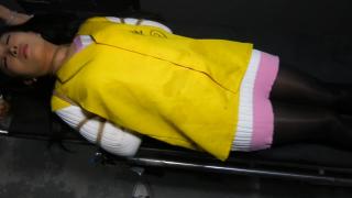 经过授权发布。续接上集,女毒贩周佳欣被押解回审讯室老实供述自己的罪行,然后签字画押后被押解回牢房。经过法院审理后周佳欣因贩卖毒品罪被判处死刑,随后被押往戒具室砸死镣,砸上死铐后将周佳欣押往死囚牢严加看管。多日后周佳欣的执行死刑命令下达,周佳欣被押往戒具用锤子砸开死镣,砸开死镣后周佳欣被五花大绑起来挂上标牌。一切就绪被周佳欣给强制跪在地上验明正身,验明正身后周佳欣被法警押往绞刑室执行绞刑,在一阵抽搐后周佳欣最终死亡,结束了年轻的生命。另外招聘模特,喜欢做模特拍片可以联系我们,定拍QQ342642509