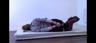 妹子被捆在床垫上,捆绑方式很简单,但是也挣脱不开~