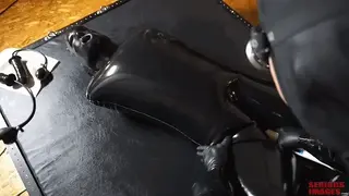 That said, our friend Elise Graves has a fetish for rubber, and is attracted to extreme and bizarre bondage experiences. She's the needle in the haystack. Elise allows us guys to get a rare glimpse of a woman who enjoys herself in this over-the-top gear. In this case she's confined in an inflatable fuck-suit heavy rubber hood from StudioGum in Germany. This is a mind-blowing combination of gear. The gear transforms Elise into a squirming rubber play toy. She's totally helpless, sexually vulnerable, blind and plugged. Frankly, I can't decide if I want to be on the outside playing with her, or on the inside where it's warm, rubbery, and separated from the outside world. What's your preference? It's all fun to me.