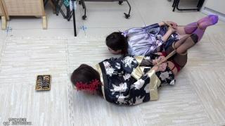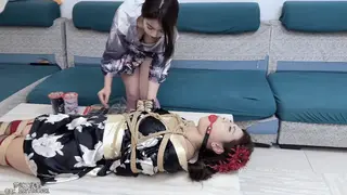 本剧由客户定制 以奖励和玩闹形式进行 视频最后有花絮 两人笑到没有力气 灵儿和苏苏 一身紫色和黑色和服 确实应景