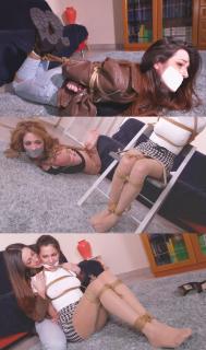 Valerie silences her with a tight cleave gag, then takes her time teasing her helpless captive. Knowing Mayla is extremely sensitive, she removes her shoes and begins to tickle her soles, barely protected by sheer pantyhose. Mayla squirms and muffles desperate laughter behind the gag.