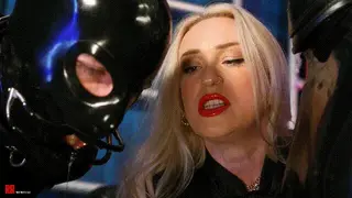 奴被绑着,女奴跪在安娜小姐旁边,身穿全套乳胶服。安娜小姐拉开男奴乳胶服的拉链,露出了她用来束缚他阴茎的笼子。她语气非常强硬地告诉他,他和他的阴茎都是她的财产,笼子何时以及是否被取下都由她决定。她斥责他姿势不好,所以才用锁链把他绑起来;她告诉女奴,如果她不注意仪态,也会落得同样的下场。这个女奴将被用来戏弄男孩,同时也会成为安娜小姐随时可以玩弄的对象。她抓起一个女奴,拉开女奴的乳胶紧身衣拉链,一边挑逗她一边让男孩看着。她命令女奴自慰,然后把手指放进男孩的嘴里。男孩戴着詹宁斯口塞,已经口水直流,别无选择,只能品尝她的味道。