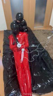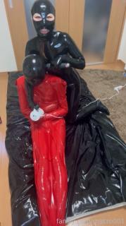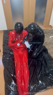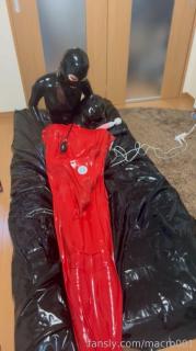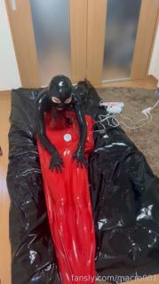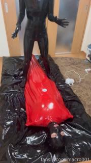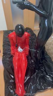 Video showing a prank on a rubber doll by restraining it in a rubber vacuum bag