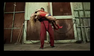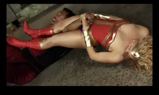 After weakening Skyhawk with a powerful uppercut, Dragos then throat lifts her and burns her throat while in the air, killing and dropping her to the ground.