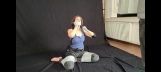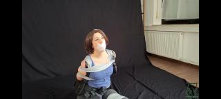 sock stuffgag, small soldiers inspired, rope bound, bondage, shibari, taped mittens, socked feet, heavy taped up feet, c. rope, struggling, moaning, gagtalk