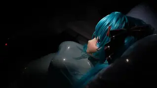 黑色乳胶紧紧裹住她丰满的胸部和曲线,把身体压得一丝不苟、闪着淫靡的光泽,蓝绿长发散开,整个人像个被密封的淫荡人偶,只能微微喘息。