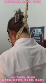 Purchased x 8 片名:月月白衬衣牛仔短裤黑丝袜,缠绕脖子,踮脚吊,手铐脚铐