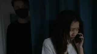 骑手锁住了门,开始搜刮。女主在沙发上光脚偷偷溜进卧室准备报警,被骑手发现,最终在床上闷死了女主。(狠狠滴拍玉足挣扎!!!!)
