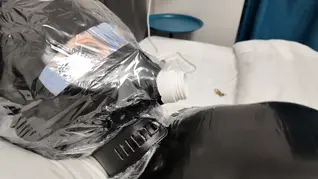 双手也被胶带缠绕成了球状,仅剩的视窗也被彻底封上,完全无法自行解开热缩袋呢~,被主人盖上呼吸口后只能无助的感受着震动棒的刺激与呼吸制御的快感~,已经完全物化成一个只会喘气的窒息肉玩具了哦~