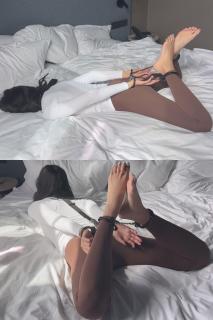 他看着我,当我挣扎得太厉害时,他只是伸手把颈带勒得更紧,让我越来越动弹不得。Lying hogcuffed as tightly as He wants me, He attaches my neck strap directly to the cuffs. The moment I try to relax or drift off, the strap pulls cruelly across my throat, slowly cutting off my air.