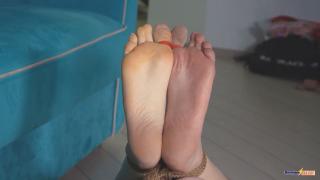Exposed and helpless, he arches her into a merciless hogtie, soles thrust upward like an offering. Her tender feet become his playground for exquisite punishment, first the stinging kiss of the whip cracks across her arches, then the cane delivers precise, burning stripes. Each lash draws guttural squeals from her gagged lips, her body convulsing in a delicious mix of pain and forbidden ecstasy. Watch her soles redden and swell under the relentless bastinado barrage, every stroke asserting total control.
