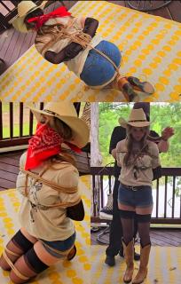 片名:Cowgirl London MP4-London Evans captured and bound with jute rope and bandana gagged