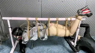 已购24次 片名:【傲嫣强制地狱】油亮肉丝+马具口球芭蕾横杆吊强制不断,全程抬头束缚无法低头,呜呜呜不停的叫也不知道想表达什么。超高跟鞋加持肉丝大长腿挣扎扭动超级诱人。仙女全程开启最大,美臀一扭一跳的超级性感!