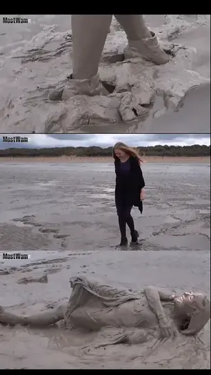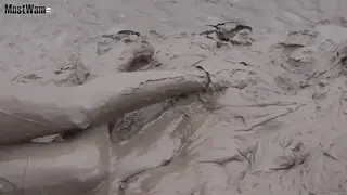 【中文湿身系列】凯西穿着一件长开衫、一件连衣裙、厚黑丝和靴子在泥地里打滚。Casey wears a long cardigan, a dress, tights and boots to go rolling around in the mud.