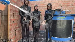 【中文湿身系列】不是“她被灌篮了吗”,而是“她被扣篮了多少次”。包括给被熏黑的女孩洗衣服。Jenna is playing Name That Tune. It's not, "does she get dunked", it's "how many times does she get dunked". Includes the wash off for the blackened girls.