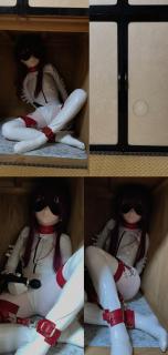 The doll is replaced by a shattered Kafuka Kigurumi head shell mask, dressed in a flesh colored all inclusive tight fitting suit and nurse uniform style milky white patent leather erotic queen outfit, as well as leather handcuffs, ankle cuffs, and leather eye masks. Leather collars are worn on the neck and top of the head, and the slender waist to hip ratio crotch is connected to the patent leather knee socks on the legs through suspenders. This time, Zentai's crotch was violently shaken by a powerful vibrator, and the doll kept trying to control its massage stick, but was restricted by the back hand tie no matter what. Finally, the puppet handed over the control of the vibrator to itself, and under continuous stimulation, the super sensitive Kafuka doll could no longer resist. The erotic slender figure and doll pretending to have a serious expression on its head reached its peak in the magic wand ... climaxed while playing in the middle, too many times, panting heavily Let's play with Kafuka together