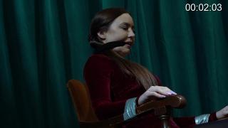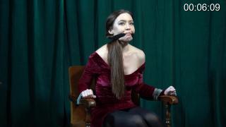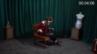 茉莉穿着一件迷人的天鹅绒连衣裙和紧身裤。她被胶带绑在椅子上,嘴里塞着一条废弃的长筒袜。她能挣脱束缚吗?